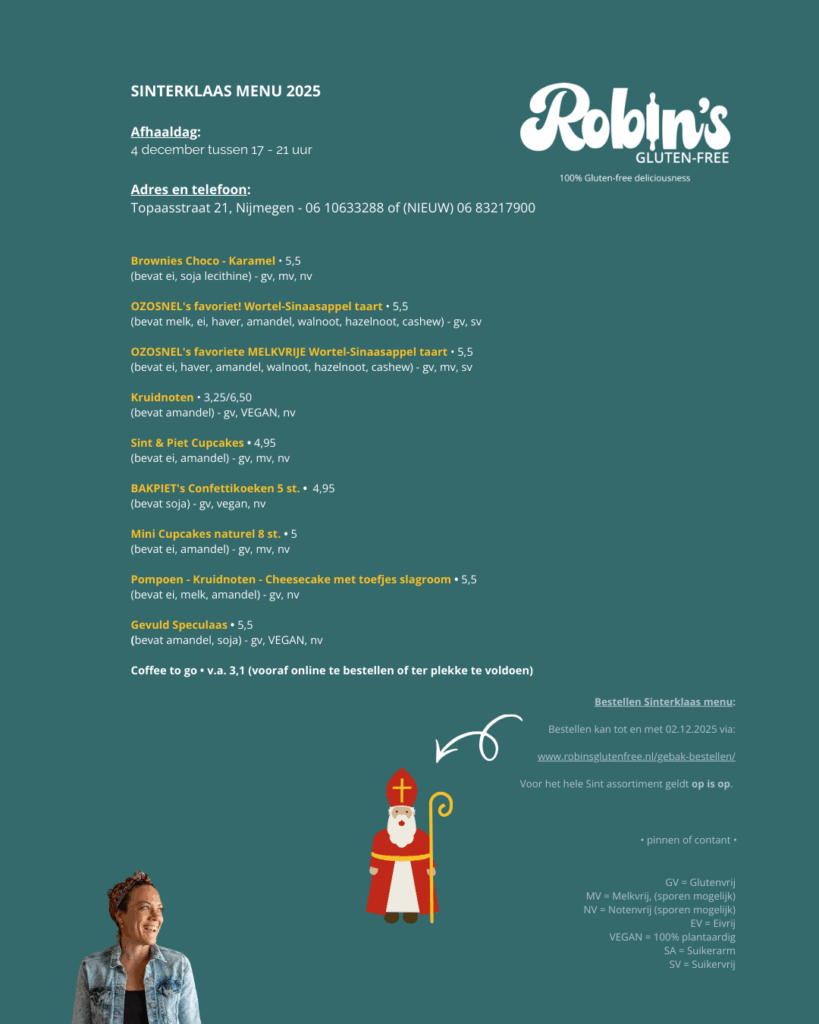 Bestel voor 2 december 2025 jouw glutenvrije Sinterklaas lekkernijen in de webshop en geniet nog meer van het Heerlijk Avondje!